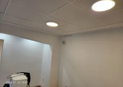 A tulajdonos kívánsága szerint a meglévő dugalj és kapcsoló helyek maradtak az eredeti helyükön, kötődobozok kibontása után behúzható volt az új vezeték a meglévő csövekbe. Konyhában és a fürdőszobában új dugaljak kialakítása volt szükséges, ezekhez a nyomvonal részben külső csatornában, részben a falba bemart csövezésben valósult meg.